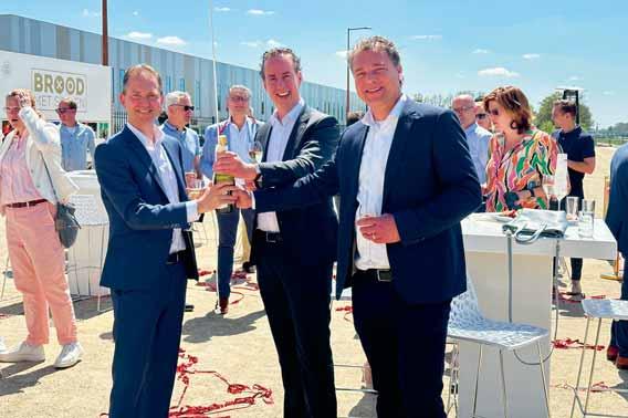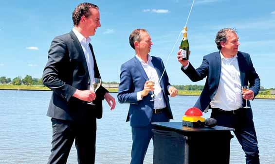 Op de foto aan de waterkant staan v.l.n.r. wethouder Arjen Maathuis, gedeputeerde Eddy v Hijum en Twente Board-lid Andre Pluimers.