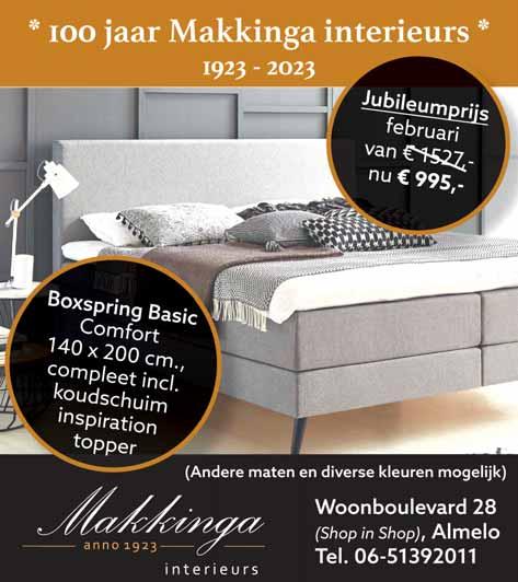 Makkinga Interieurs is een familieonderneming van de derde generatie. Sinds 2020 is Makkinga interieurs met vier gespecialiseerde concepten gevestigd in de Shop in Shop op de Woonboulevard. Eigenaar Martijn Makkinga viert het 100-jarig bestaan gedurende het jaar met diverse jubileumacties. “Altijd stonden en staan kwaliteit, service en een gedegen advies voorop bij Makkinga.”