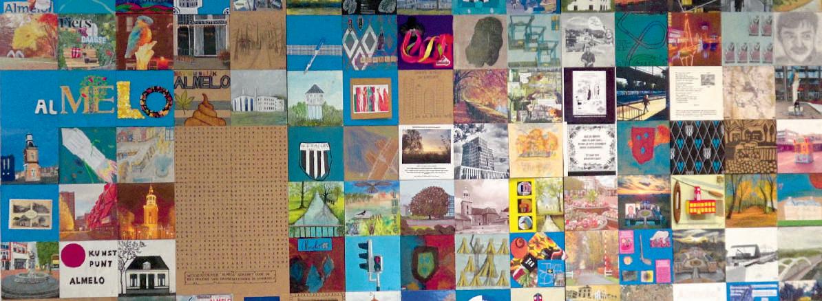 Vorig jaar oktober werd vanuit het Stedelijk Museum aan alle Almeloërs de kans geboden om een kunstwerkje te maken van twintig bij twintig centimeter op een houten paneeltje. Iedereen mocht met verf, foto’s, kleurpotloden, papier en pen of wat ook maar aan de slag om zijn of haar betrokkenheid bij en liefde voor Almelo uit te beelden.