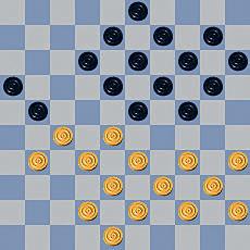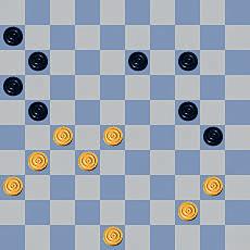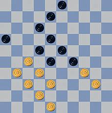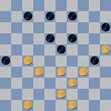 Na 17 zetten kwam de stand van het eerste diagram op het bord. Zwart dreigt met 17-21 twee schijven te winnen. Ook met 18-22 worden er twee schijven gewonnen. Met de zet 29-33 wordt slechts 1 schijf gewonnen. Datzelfde geldt eveneens voor 29-34. Ruilen met 40-34, waarna diagram twee op het bord staat, helpt niet. Dan wint wit een schijf door 18-22 en daarna 17-21!