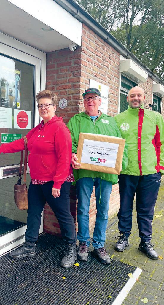 Op Dierendag raasde storm Amy door Nederland. Maar tegen het middaguur liet het zonnetje zich even zien bij Dierenopvangcentrum ’t Noordbroek. Passend bij een feestelijk moment! Op Dierendag zette GroenLinksPvdA Almelo de dieren, vrijwilligers en medewerkers van Dierenopvangcentrum ’t Noordbroek in het zonnetje. Jorien Geerdink, Hans Buitenweg en Alfer Ekizkuyu overhandigden aan Jennifer van ‘t Noordbroek een doos met attenties voor mens en dier.