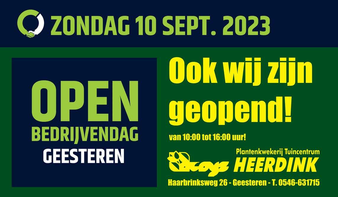 De Aanleg 9, 7678 VZ Geesteren. Tel. 0546569393, fax 0546-569459. Openingstijden: ma. t/m vr. 8.00-17.30 uur, van 12.30-13.30 uur gesloten.