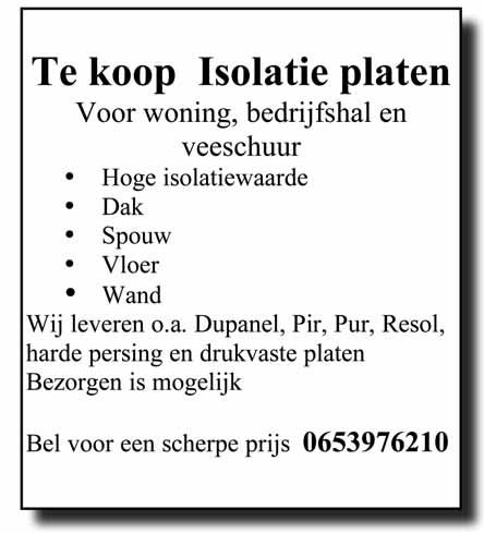 Uiterste aanleverdatum is donderdag 17.00 uur voor plaatsing op dinsdag in dit blad.