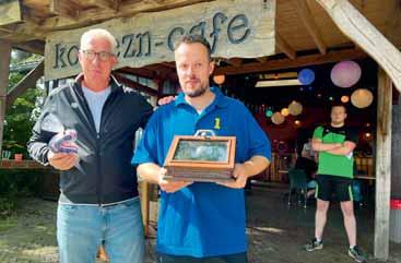 ning naast het drukke zakenleven. “In het seizoen laat ik ’s morgens om zes uur de duiven los en rijdt dan direct naar de winkel om de noodzakelijke voorbereidingen te treffen. Om zeven uur ben ik weer thuis en laat de duiven binnen en verzorg ze daarna. Om acht uur ben ik weer aan de Dorpsstraat. ’s Middags zijn we een uur gesloten en dan is er weer tijd voor de duiven. ‘s Avonds na zessen dan is er alle tijd om de duiven te verzorgen. Bovendien heb en neem ik de gelegenheid om tussentijds even naar de duiven te gaan. Als ze zaterdags terugkomen, dan ben ik in principe altijd bij het hok. Het is soms passen en meten, maar het geeft mij daarnaast ook veel rust. Ik heb een beperkt aantal duiven, zodat ik gemakkelijk het overzicht kan houden.”, aldus Gerard. Bescheiden als hij is zit hij nimmer groots op de praatstoel, maar wie goed luistert hoort dat hij een echte duivenman
