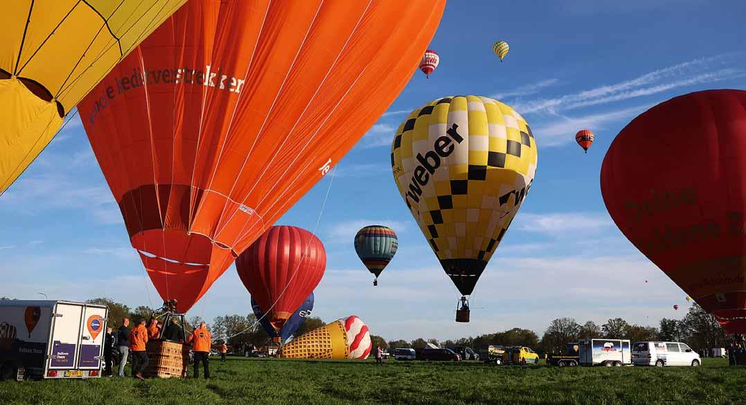 Terreinwagens – busjes met aanhangers met daarin de luchtballon en toebehoren reden zaterdagmiddag richting Zaal Spalink in Geesteren. De ballonvaarders en de crew genoten eerst van een schnitzel met friet, daarna was er een briefing voordat de luchtballonnen uitgepakt werden. Op het grasveld aangekomen ging het snel. De ene na de andere luchtballon was klaar om het luchtruim in te gaan. Het leek wel of ze als paddenstoelen uit de grond schoten. Niet eerder gingen bij een ballonevenement in Nederland zoveel ballonnen tegelijk de lucht in, zelfs niet tijdens het jaarlijkse evenement Twente Ballooning op het Hulsbeek in Oldenzaal. Vanwege de massale deelname van 260 personen en 45 ballonnen werd een record gebroken.