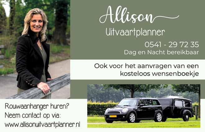 Dierenartsen: C. van der Bijl, D. de Bruin en mevr. J. van Holten. Telefonisch spreekuur 8.30-9.00 uur. Geopend ma t/m vr 8.3017.00 uur. Alle consulten zijn op afspraak. Voor spoedgevallen 24 uur per dag 7 dagen per week te bereiken. Voor nadere informatie: www.dierenartspraktijkgeesteren.nl. E-mailadres: info@dapgeesteren.nl. Kijk ook op Facebook voor de meest actuele informatie. Markgraven Dierenartsen, Almeloseweg 169, 7615 NA Harbrinkhoek, tel. 0546-441444.