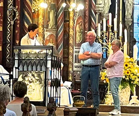 Voor Johan en Fien was het een mooie verrassing dat ze samen gehuldigd werden. Beiden ontvingen een oorkonde van de bedevaartorganisatie en een mooie kaars van de Broederschap.