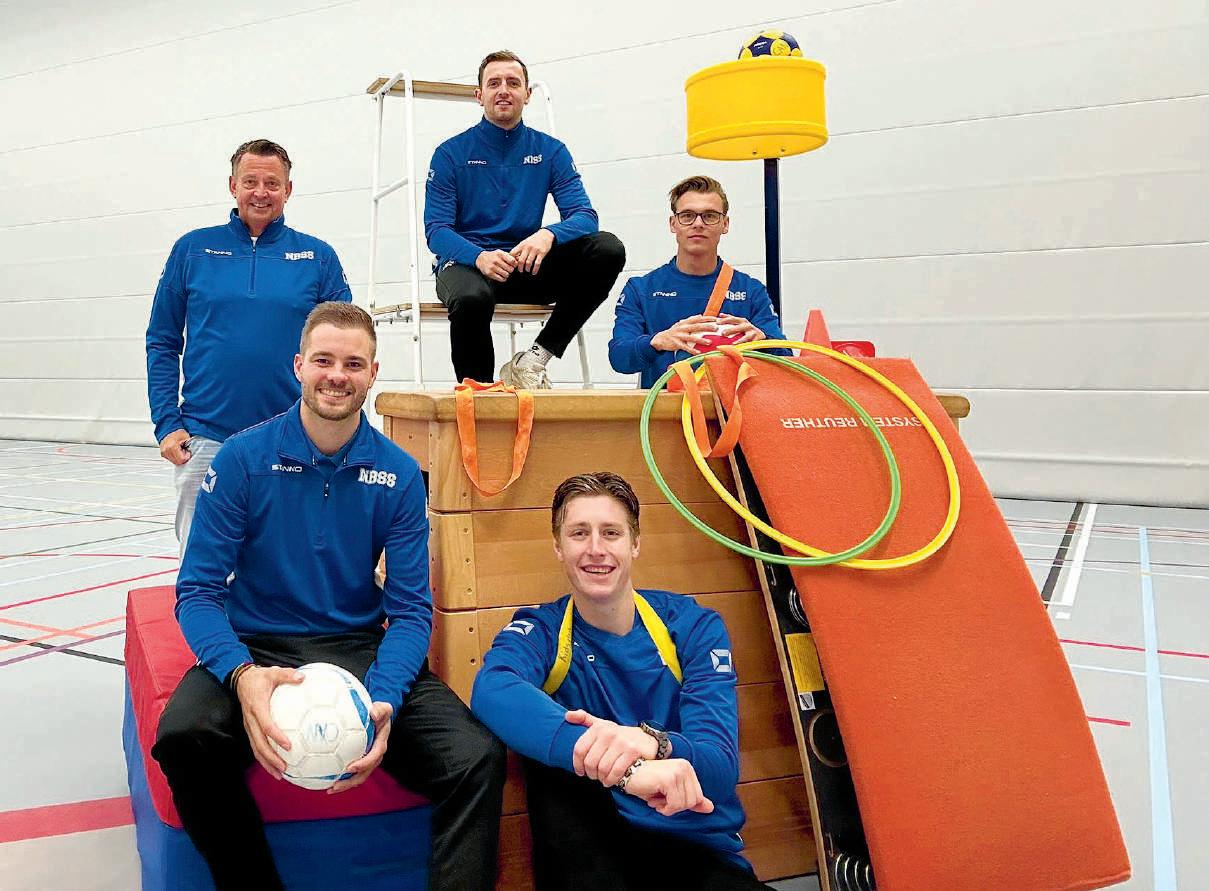 Op de foto ziet u de buurtsportcoaches. Op de voorste rij, van links naar rechts: Tom en Ruben. Op de achterste rij, van links naar rechts: Erik, Mick en Luuk.