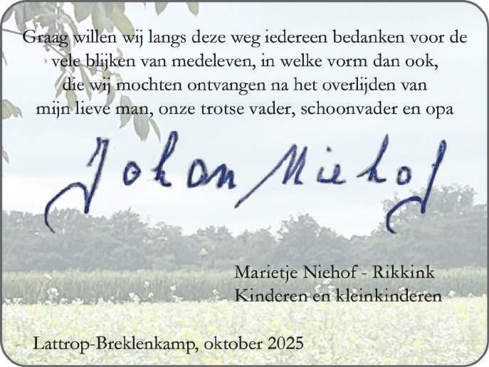 Opgave familieberichten voor dit blad: mail@drukkerijvanbarneveld.nl of bel 0541-351869