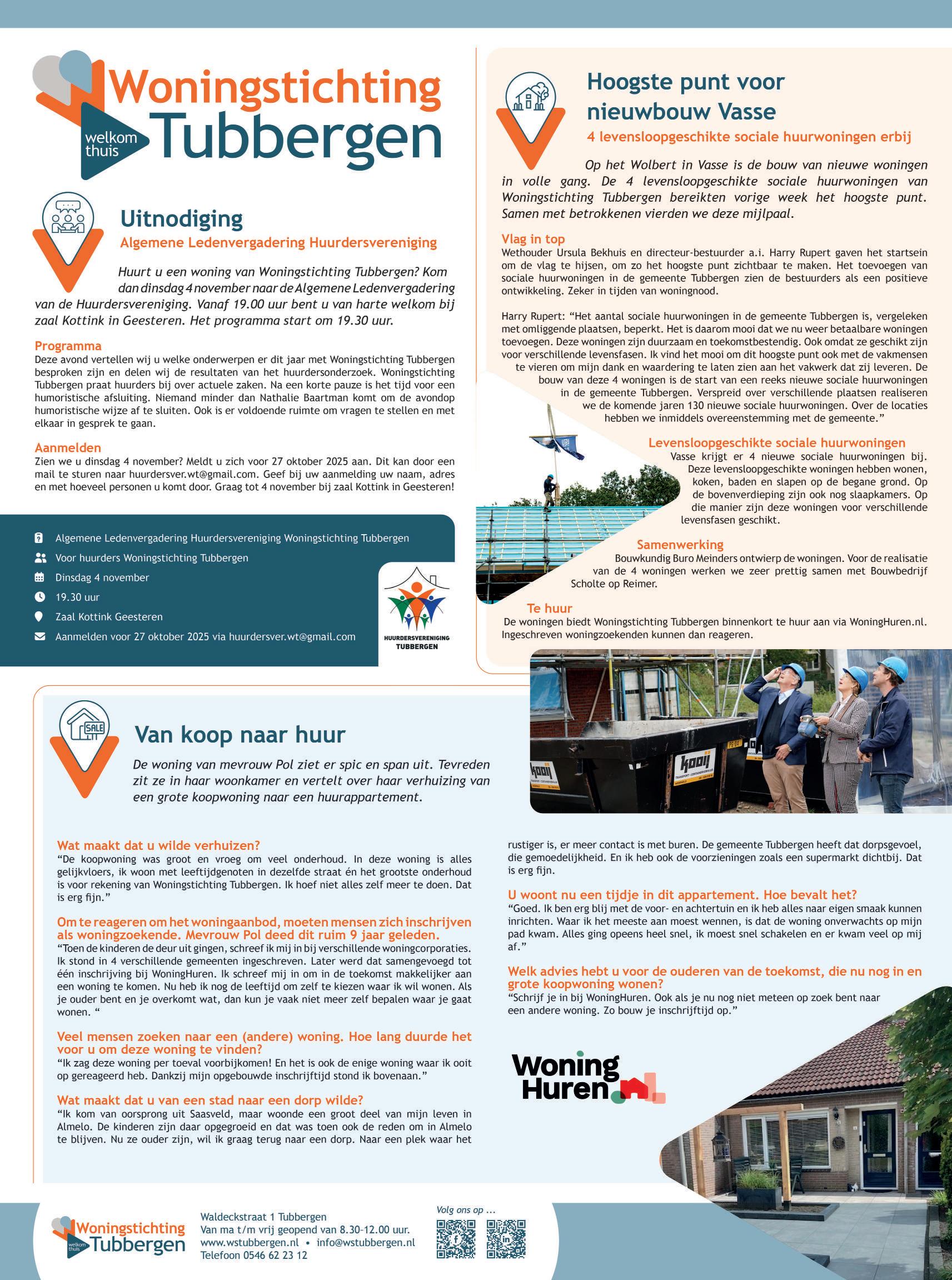 geschikt zijn voor verschillende levensfasen. Ik vind het mooi om dit hoogste punt ook met de vakmensen te vieren om mijn dank en waardering te laten zien aan het vakwerk dat zij leveren. In samenwerking met de gemeente Tubbergen oriënteren wij ons nu op andere nieuwbouwlocaties om de komende jaren huurwoningen toe te voegen.”