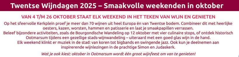 Elke dinsdag en woensdag in Albergen, Bruinehaar, Fleringen, Geesteren, Harbrinkhoek, Langeveen, Mander, Manderveen, Mariaparochie, Ootmarsum, Reutum, Tubbergen, Vasse en Weerselo.