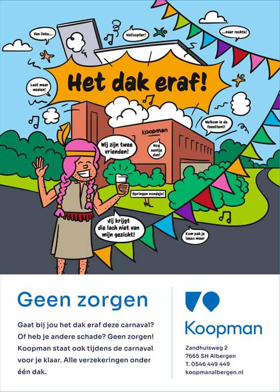 Dus trek je mooiste outfit aan en dompel je samen met familie en vrienden onder in de carnavalsvreugde. Tot zondag in Albergen!