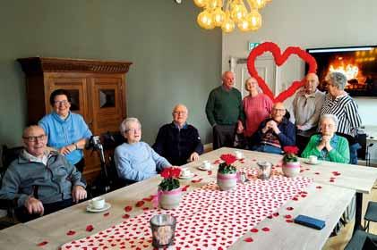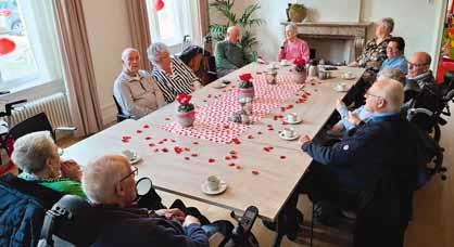 In verband met Valentijnsdag heeft de Eeshof-Bloemenhof een warm samenzijn georganiseerd voor echtparen die niet meer bij elkaar wonen, maar nog altijd dierbare momenten kunnen delen. Een gelegenheid om samen herinneringen op te halen, liefdevolle woorden uit te wisselen en te genieten van elkaars gezelschap. De Schaepmanzaal in Hof van Tubbergen was mooi aangekleed door Reinerink Bloemen, hiervoor hun dank. De overige bewoners van de EeshofBloemenhof werden verrast met een lekkernij in de vorm van een hart.