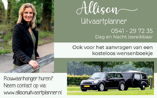 In de eerste week van november (week 45) verschijnen de speciale uitvaartpagina’s in onze 10 uitstekend gelezen weekbladen die bij meer dan 170.000 Twentse huishoudens huis-aan-huis op de deurmat vallen. Aanlevering uiterlijk woensdag 29 oktober voor 12.00 uur.