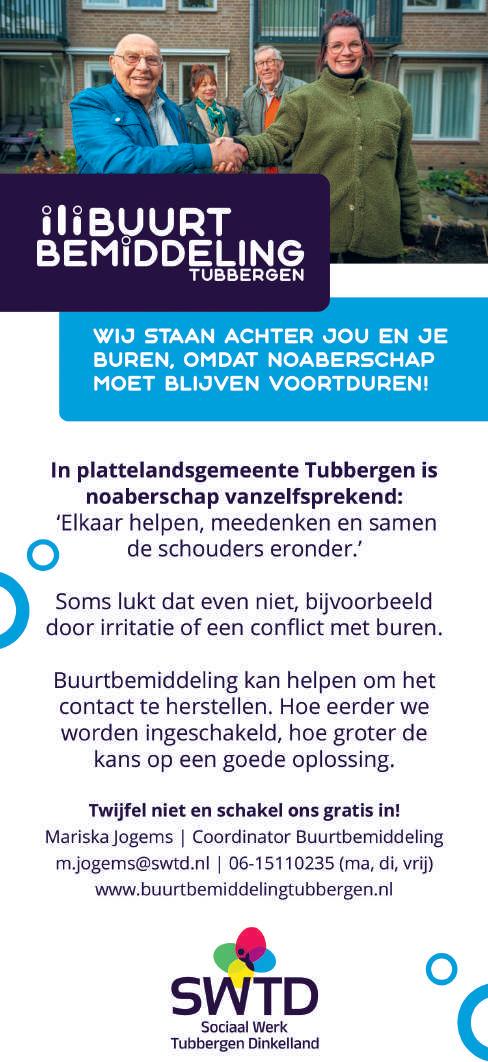 Verloskundigenpraktijk Tubbergen-Almelo: Muriël van der Aa, Marèl Tiehuis, Irma Hoekstra, Jeannette Tiehuis. Tel. 0546-621340, b.g.g. ZGT, tel. 088-7087878.