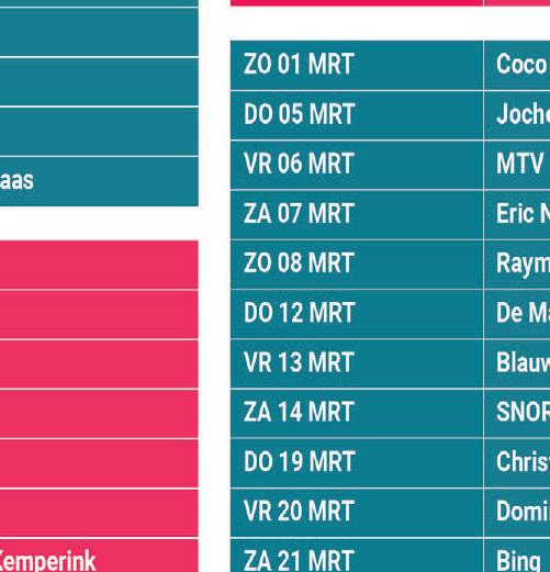 ELKE DINSDAG EN VRIJDAG OM 13.00 UUR