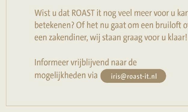Daarnaast kunt u er terecht voor brunch, hightea, bbq’s en diner op maat voor kleine en grote gezelschappen. Binnenkort start het wildseizoen weer en met de kerst en andere feestdagen zijn er speciale menu’s voor zowel een diner met de familie als voor een bijeenkomst met uw bedrijf.
