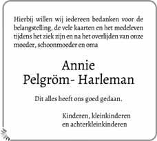 Met verdriet en vervuld van mooie herinneringen, hebben wij afscheid moeten nemen van onze schoonzus en tante