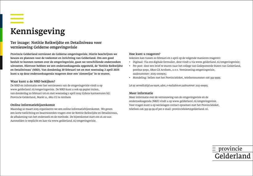 BEKENDMAKINGEN WEEK 8 – 17 FEBRUARI 2025