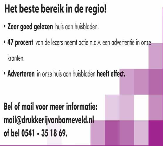 Onze medewerkers en medewerksters zijn u graag van dienst en helpen graag om een persoonlijke advertentie te maken. Wij maken deze voor u op, en sturen altijd een drukproef (inclusief offerte) ter correctie voor plaatsing. Voor opgave van een overlijdens-, familie- of bedankadvertentie kunt u ons mailen via: mail@drukkerijvanbarneveld.nl. Voor plaatsing in diezelfde week moet het materiaal uiterlijk maandagochtend voor 9.00 uur bij ons binnen zijn. Als u graag eerst advies wilt, dan kunt u ook bellen met: 0541 – 351869. Via e-mail reageren wij altijd binnen 24 uur.
