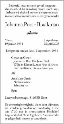 Wij maken deze voor u op, en sturen altijd een drukproef (inclusief offerte) ter correctie voor plaatsing. Voor opgave van een overlijdens-, familie- of bedankadvertentie kunt u ons mailen via: mail@drukkerijvanbarneveld.nl.