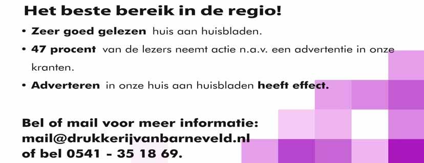 Voor plaatsing in diezelfde week moet het materiaal uiterlijk maandagochtend voor 9.00 uur bij ons binnen zijn. Als u graag eerst advies wilt, dan kunt u ook bellen met: 0541 – 351869. Via e-mail reageren wij altijd binnen 24 uur.