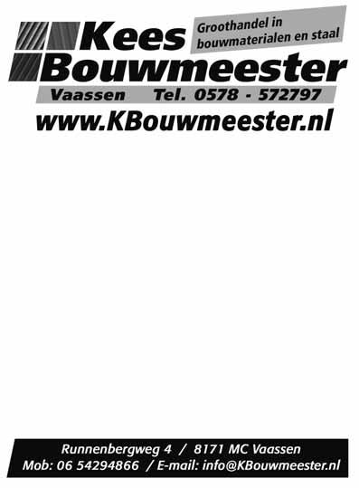 8171 MC Vaassen Tel: 0578 572797 | Fax: 0578 572704 | Mob: 06 54294866 | E-mail: KBouwmeester@zonnet.nl