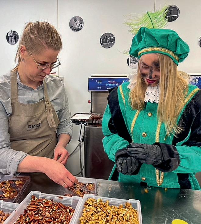 Piet was zó onder de indruk dat ze meteen kon helpen. Het versieren van chocoladeletters en andere mooie Sinterklaasproducten. Onder het deskundige oog van Linda Baas kreeg ze zelf instructies om de letters net zo prachtig te versieren. Want als de Pieten iets controleren, doen ze het goed!
