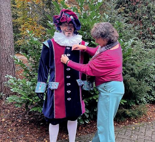 Na een aantal creatieve pasmomenten was het zover: twee schitterende Pietenkostuums zagen het licht in Borne! Elk detail was doordacht: prachtige kragen, glimmende knopen, vrolijke kleuren en een pasvorm die de Pieten bijna liet dansen van enthousiasme.