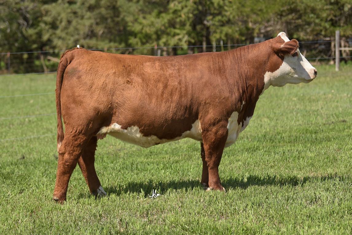 Summer Fling is one of the most maternally designed Herefords with her structural correctness and phenotype, she is built for the long haul. Deep ribbed, long and red coloring down low. The Albers girls showed her successfully last year. Her beautiful mother SEPT WL Just a Flirt sells as lot 2 in this sale. Summer sells bred to Final Test on 12/21/2024 Due September 30,2025.