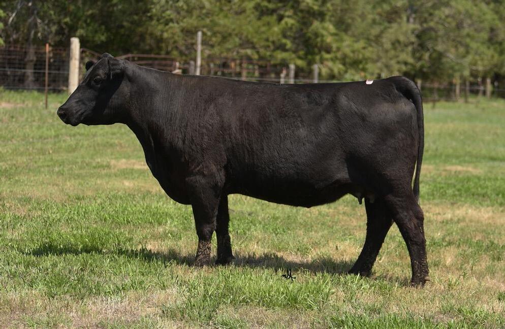 A nice young Angus female and oh man she features an awesome cow family the great TC Peg 9100. Super long sided, good rib shaped cow with a picture-perfect udder. Her first calf was a Balancer heifer calf we sold to the Walahoski Family in Nebraska. Her 2025 heifer calf by PVF Blacklist will be a sale feature on our November Online Open Heifer sale. Sells bred to Sexed PVF Kingpin on July 12, 2025.
