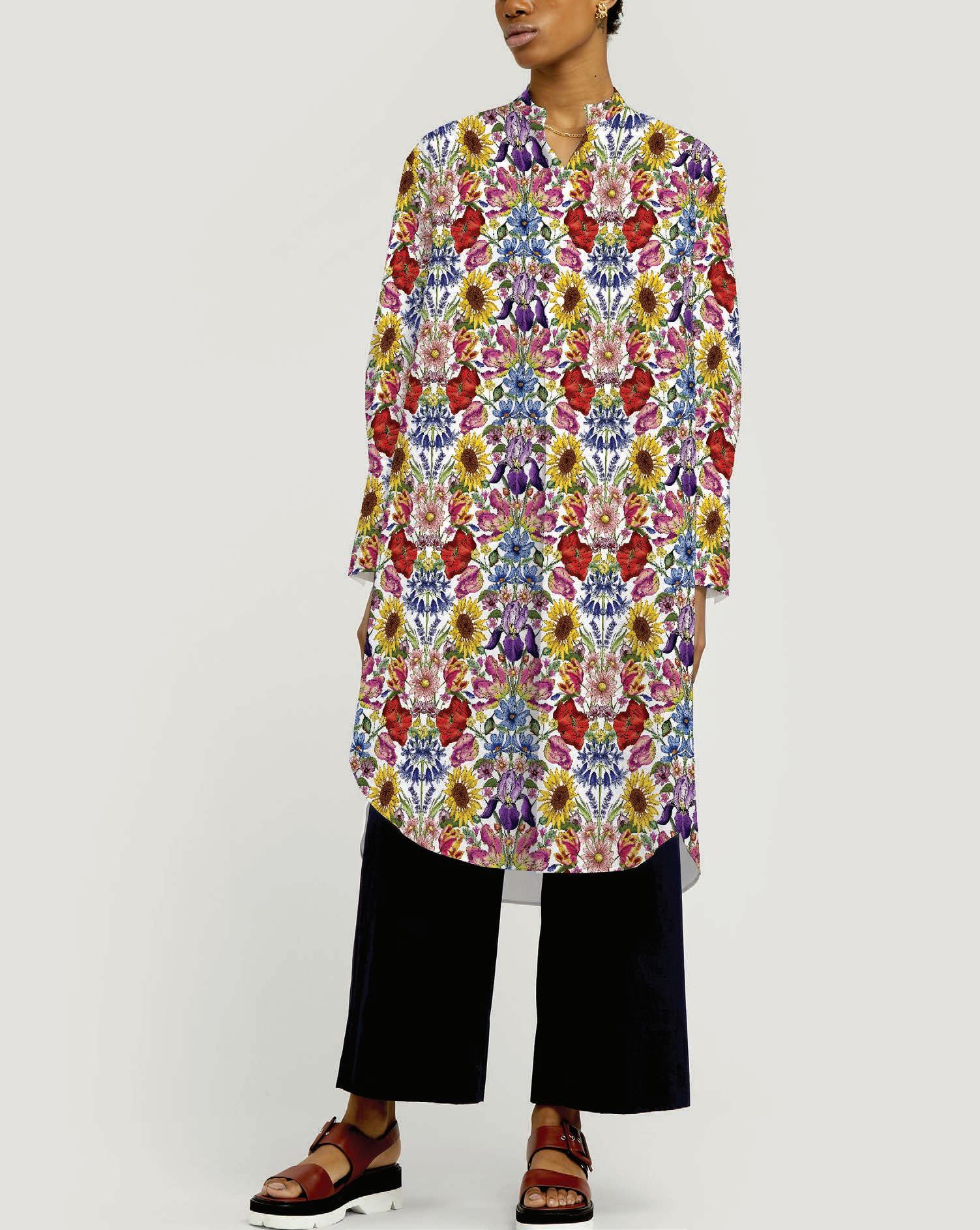 celebrates Liberty’s enduring ties to Asian art and design. Originally designed in the early 193 0s, the simplified outlines of peonies and chrys anthemums create a sense of refined elegance.