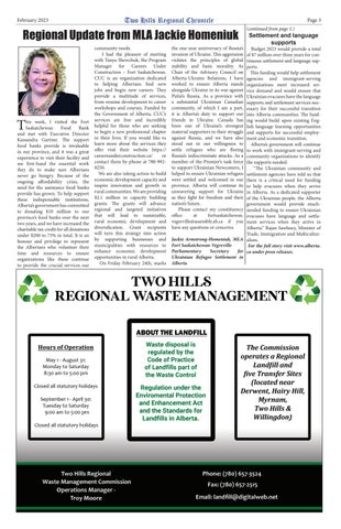 ing to Canada to avoid Russia’s war machine. Our Alberta government will continue to find ways to support Ukrainians coming to Alberta as long as this war continues.” Jackie Armstrong-Homeniuk, parliamentary secretary for Ukrainian Refugee Settlement. (continued on page 3.)