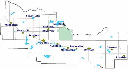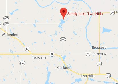 From Two Hills: 9 km west on Hwy 45 and 13 km north on Sec Rd 860