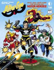 GOLDEN AGE NEDOR super-heroes are spotlighted, with MIKE NOLAN’s Nedor Index, and art by MORT MESKIN, JERRY ROBINSON, GEORGE TUSKA, RUBEN MOIRERA, ALEX SHOMBURG, and others! Plus FCA, MR. MONSTER, more 2011 Fandom Celebration, and part II of JIM AMASH’s interview with Golden Age artist LEONARD STARR! Cover by SHANE FOLEY!