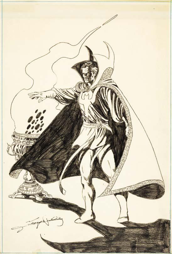 (left) George’s 1973 take on the amazing Spider-Man, from the portfolio he was shopping around at Marvel and DC at the time . Courtesy of Steve Lipsky . (right) An undated early Pérez portrait of Dr . Strange . Courtesy of Heritage Auctions (www.ha.com)