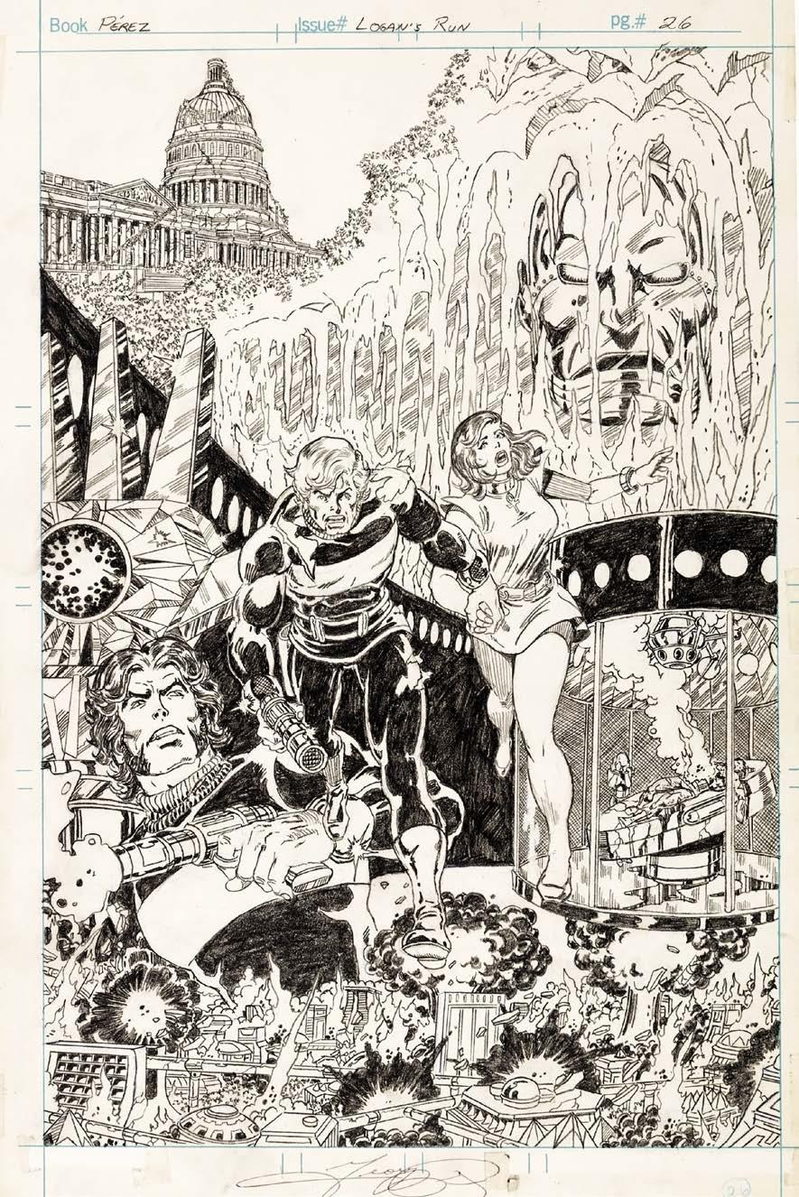 2010 George Pérez original art to the cover of the TPB Crisis on Multiple Earths vol. 5. Courtesy of Heritage. TM & © DC Comics.