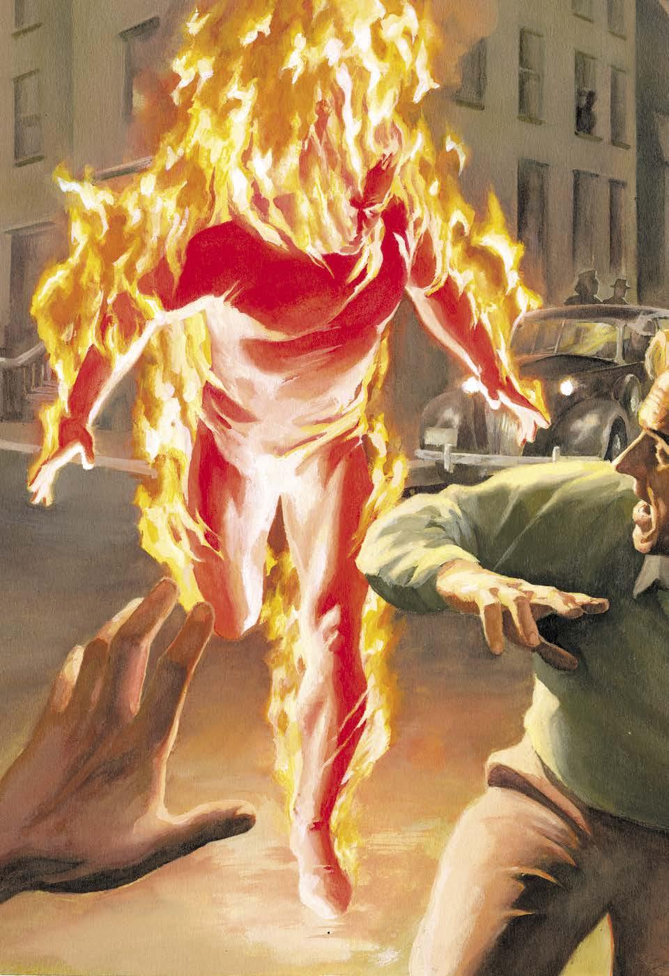 Jim Hammond, the original Human Torch, whips up quite a stir among the folks on the street on Alex Ross’ cover artwork for Marvels #1 (Jan. 1991). All art scans accompanying this interview are courtesy of Alex Ross.