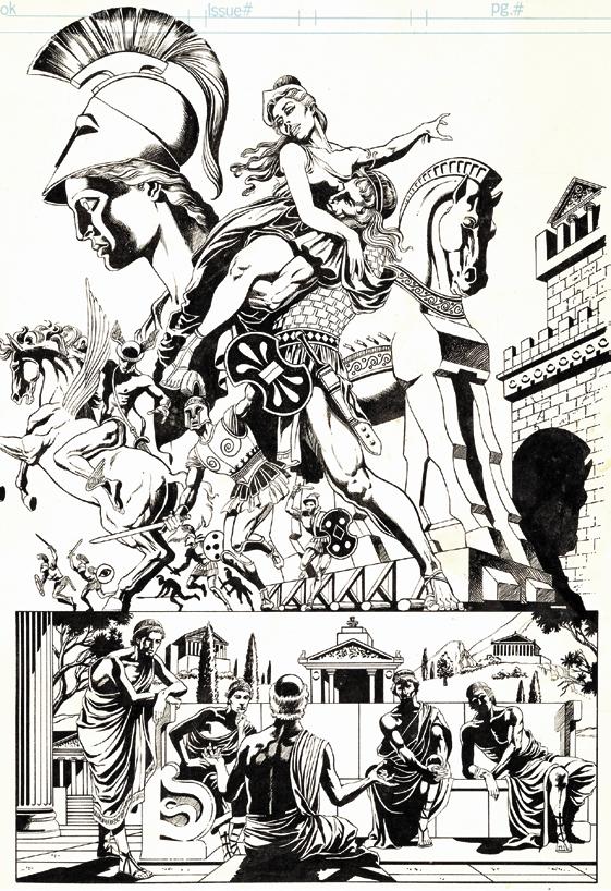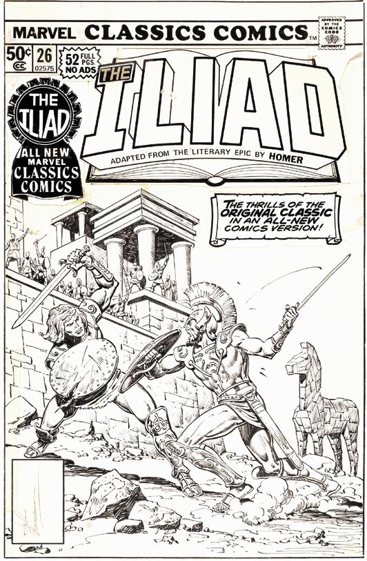 John Buscema and inker Ernie Chan for Marvel Classics Comics #26 (1977), adapting The Iliad. Autographed by Buscema. (right) A gorgeous interior page from The Iliad, showcasing the art of Yong Montaño. Both, courtesy of Heritage.