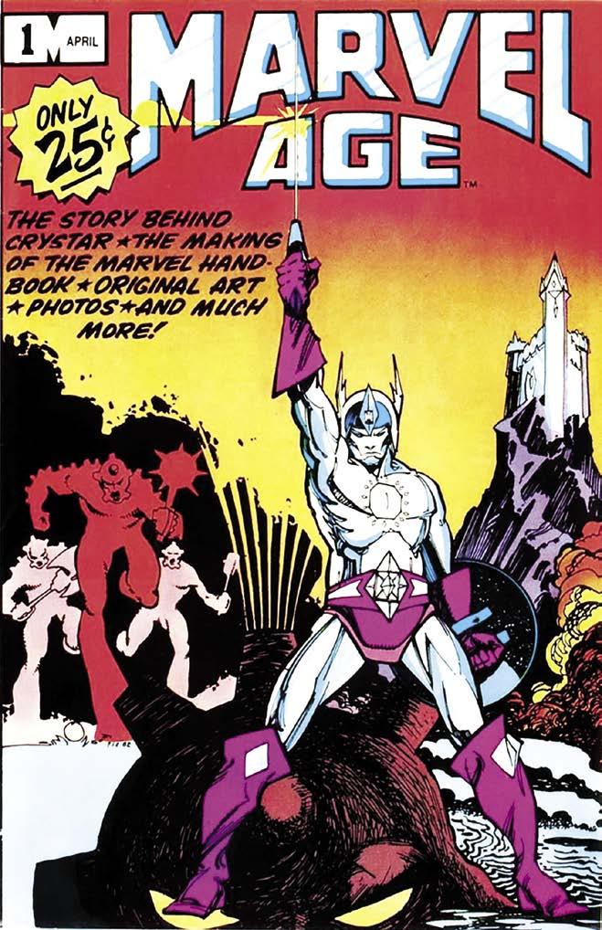 One magazine that was perfectly positioned to chronicle Marvel Comics’ contribution to all of the above was Marvel Age , which launched a first issue cover-dated April 1983. The first thing most potential readers would have seen was the cover by Walter Simonson (promoting his new Crystar series), which is a pretty nifty place to launch from. Although the magazine was listed as just Marvel Age in the indicia, it was usually referred to as Marvel Age Magazine by those who worked on it. The addition of the “zine” word is significant. This was a place where there would be information for the fans and retailers.