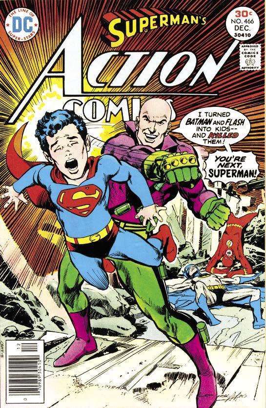 However, by the mid-1970s, the trend had long come and gone and heroes had matured along with their audiences—or so it would seem. It was in this changing landscape of the medium that Action Comics #466 (Dec. 1976) materialized on newsstands with an eye-grabbing Neal Adams cover showing Lex Luthor throwing around a Superboy younger than his teenage counterpart had ever been, and boasting of having already killed Batman and the Flash. It was a Superbaby story almost ten years past the prime of such tales, and it remains perhaps the most exciting of its ilk.