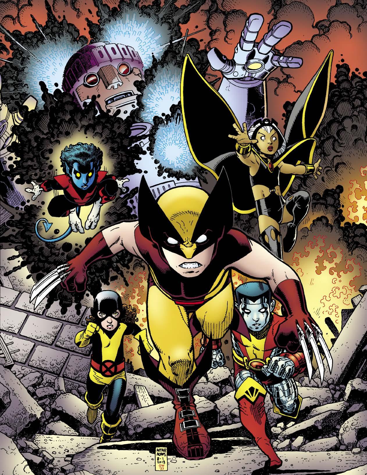 Readers met the X-Babies in X-Men Annual #10 (1986). Its cover, by the one and only Arthur Adams, homages 1975’s Giant-Size X-Men #1 cover. (title above) Crayon artwork prepared specially for BACK ISSUE by Addisyn Fowlks.