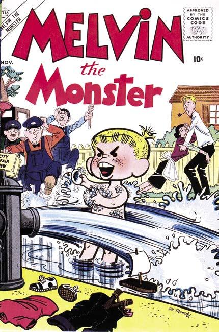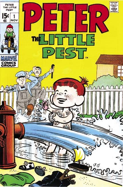 (left) No relation to Spider-Man’s alter ego, Peter, the Little Pest #1 (Nov. 1969) was an odd entry to Marvel’s late Silver Age/early Bronze Age lineup. That cover’s art was altered from (right) artist Joe Maneely’s cover to the series’ source material, the oldie Melvin the Monster #5 (Nov. 1956).