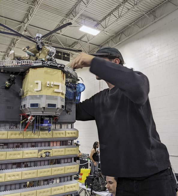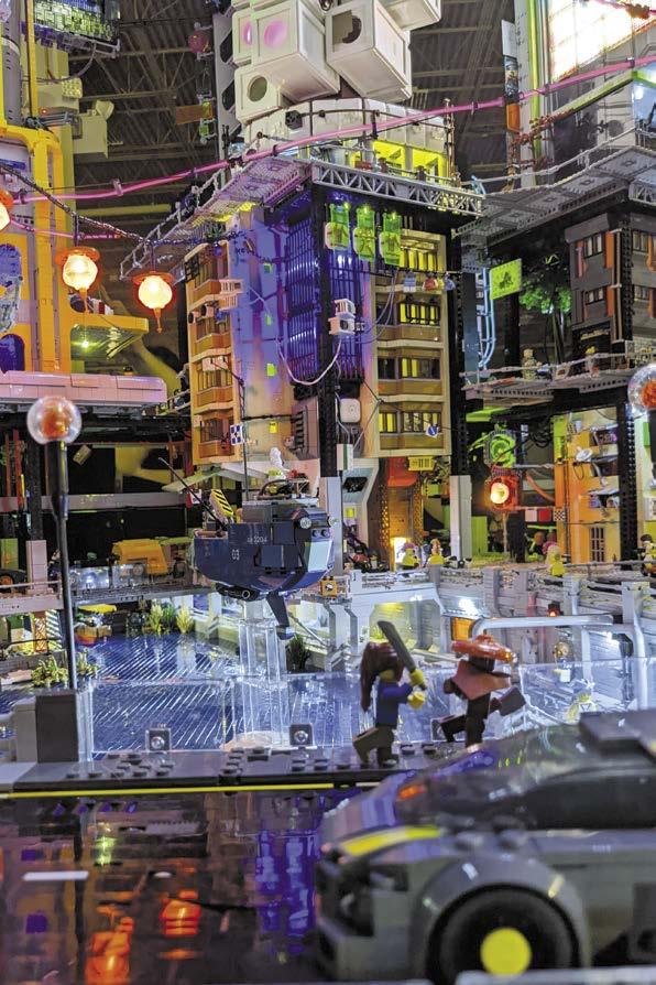 Seen at BrickFair Virginia 2022, New Hashima is a growing community-build that depicts a cyberpunk city complex inspired by Neo-Tokyo from the movie Akira, Los Angeles from the movie Blade Runner, and even Night City from the video game Cyberpunk 2077. However, the beginnings of New Hashima came from a collaborative build from 2013. A group called BroLUG built a Cyberpocalypse display that was shown at Brickworld 2013 in Chicago, Illinois, and later at BrickFair Virginia. This build was the inspiration for Stefan Formentano, who had seen the Cyberpocalypse build online, loved the concept, and wanted to build his own version. Having visited Japan in 2015 and 2016, Stefan knew that he wanted to build new MOCs using Tokyo as inspiration. There was also a lot of hype around the Cyberpunk 2077 video game that brought the genre back to the forefront of people’s minds, which ignited his interest in building the city.