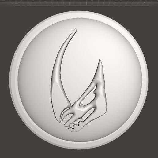 Now we have Grogu’s two weapons and helmet, but as we saw in the “Foundling” episode, Grogu received a chest plate featuring the mudhorn emblem. This was very easily created in Meshmixer, as I created a circle that I cut; this gave the shield-like curve that this chest plate appears to have. I then created a donut and placed this around the central shield. I then cut the back away and added an extruded mudhorn. The Mudhorn had to be tapered to match the curve of the plate. Instead of performing a classic cut, I brought the rounded shield portion forward to cover part of the mudhorn shape. Once I had overlap between the two, I merely performed a Boolean Intersection as opposed to a Boolean Union or Boolean Difference. This means only where materials overlap was the Mudhorn preserved, which caused the mudhorn to taper just as the shield portion does, and finishes the chest plate.