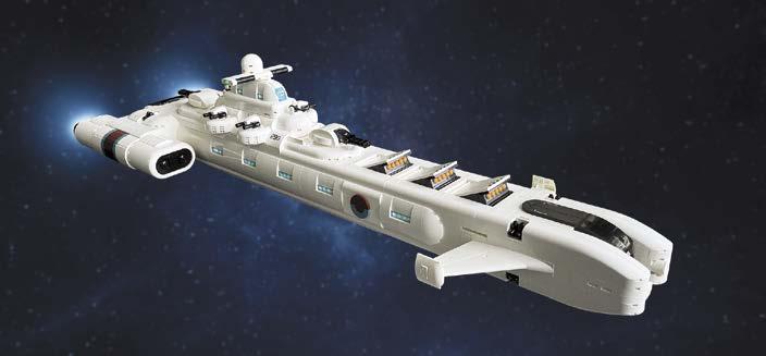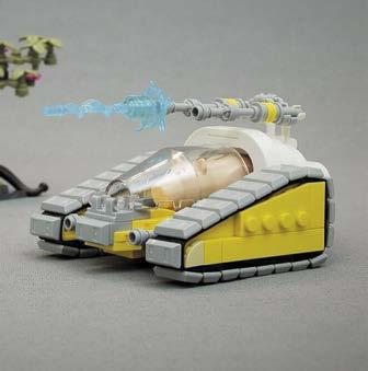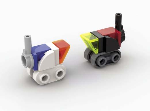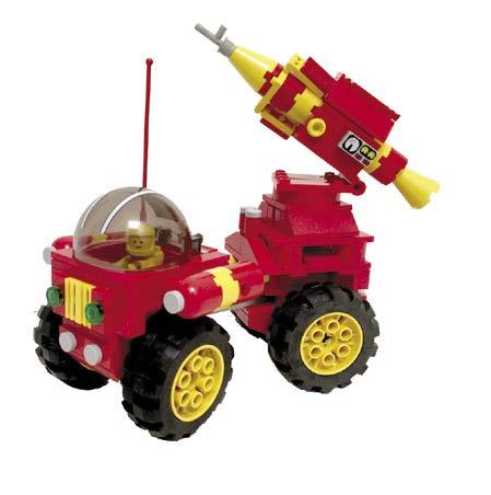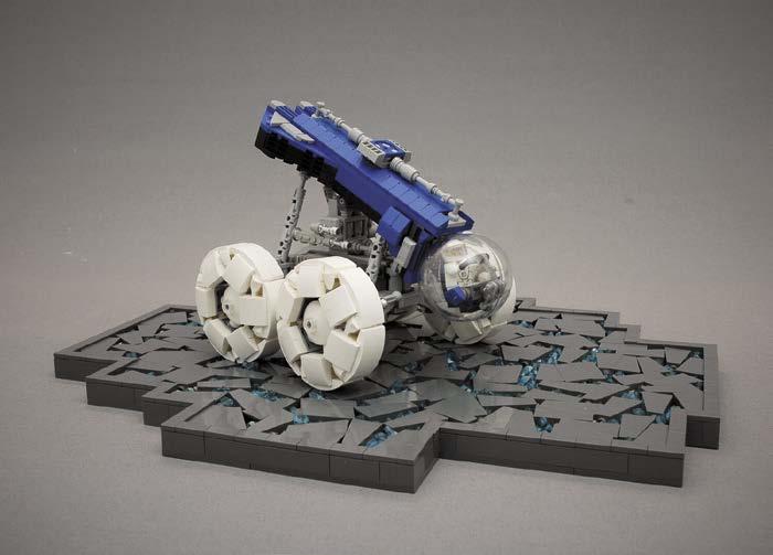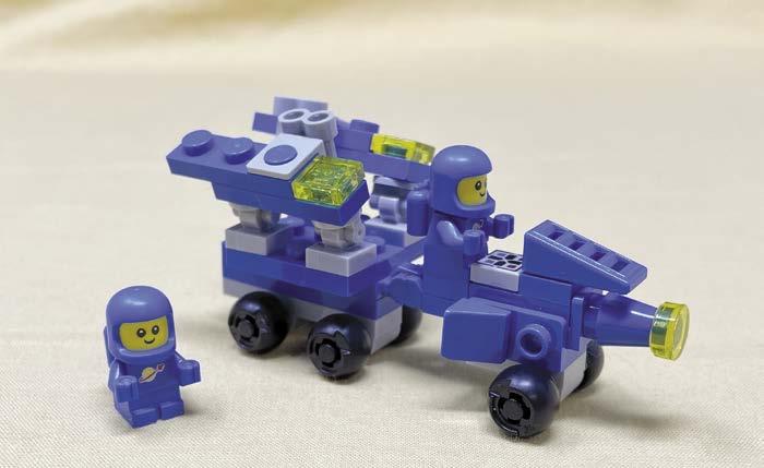 to include many of the details from the original sets in his baby versions. Play features were also important. For Dana, picking a favorite model is like asking which is his favorite child. All of the models have bits that are special to him, such as the rocket gantry from 486 or the transparentclear shields on the 452, or even making sure the rover fits on the back of 497. Part of the fun was finding elements to make the reduction in scale still look right, like the round 1 x 1 with bar handle for the monorail car in 6970, the new 1 x 1 plate with bars on two sides for 6801, and Technic ball joints for his beloved balloon tires. Other challenges were building scaled-down versions of the 1558-B
