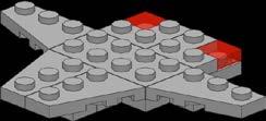 Another tricky point of the transport ship is that the engine cylinders are embedded in the flat wing structure. Fortunately there are the relatively new 1x2 plates with pin hole on top (part number 11458) which can be assembled in a way that there is a 1x1 plate leftover on each side of the engine tube by fixing them with a friction pin.
