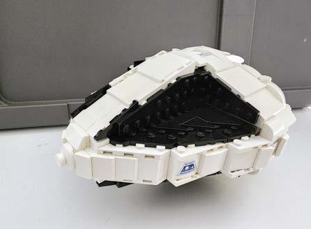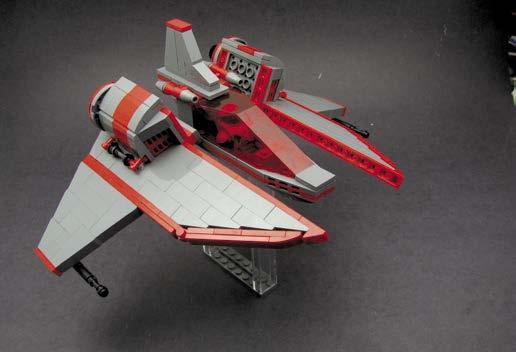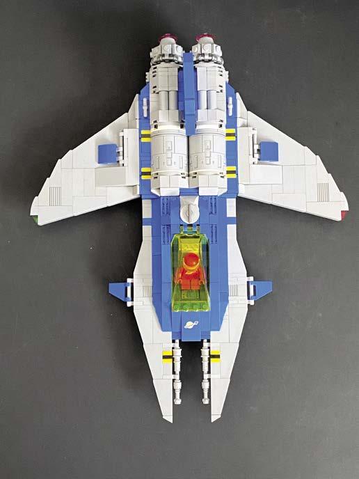 My Red-Tron VV I built in 2022 was largely inspired by my “The Lost Themes of LEGO: Sets That Could Have Been” article for BrickNerd (I write as Michael J—see it at bricknerd.com/home/the-lost-themes-of-lego-sets-that-could-havebeen-7-8-22). The article collects pictures and thoughts on themes that were conceptualized at LEGO but not released, although some did come out in different forms. A lot of the article is based on what Mark Stafford wrote in his BrickJournal #6 article in 2009 on Space themes that weren’t produced. I gravitated towards the theme I called Red-Tron in the article for last year’s VicViper. The aggressive, industrial feel of that theme felt right for a Viper. That’s likely why several of my previous VV’s have been Blacktron. I think the nature of a VicViper lends itself to an aggressive story, especially when looking at the Gradius games, that doesn’t work as well for Classic Space and some other themes. That being said, I have built less aggressive VV’s, but I like them the best when, like my Red-Tron VV, they have a “give no quarter” appearance.