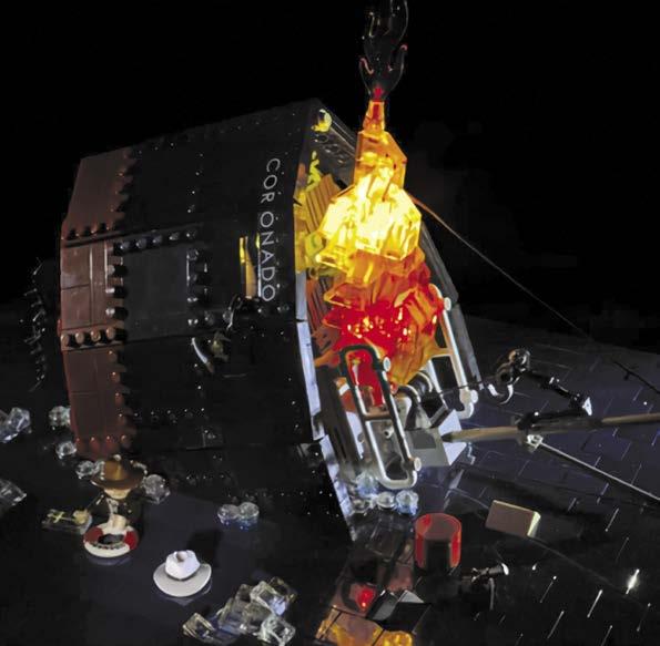 Explosions usually feature large fireballs made from transyellow and/or trans-orange or other translucent bricks (see figure 2). When building fireballs, make sure to make it hollow to run lights inside. Use the brightest lights that you have available. Older LEGO 9v lights can be used and have a flashing mode, but will draw a lot of current. Another option is to use several ‘strip lights’ offered through most third party lighting manufacturers in many colors. These feature two bright LEDs attached to a flexible adhesive strip with connectors on each end, so they can be daisy-chained.