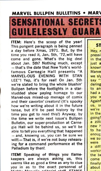 Below: News item appearing in the June 1972 cover-dated Marvel comics mentioning the event.